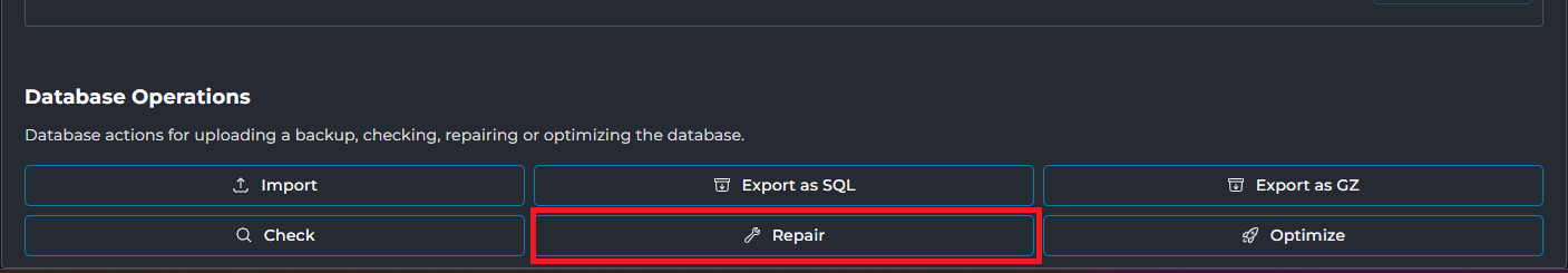 การ Repair Database MySQL (Evolution Skin) New