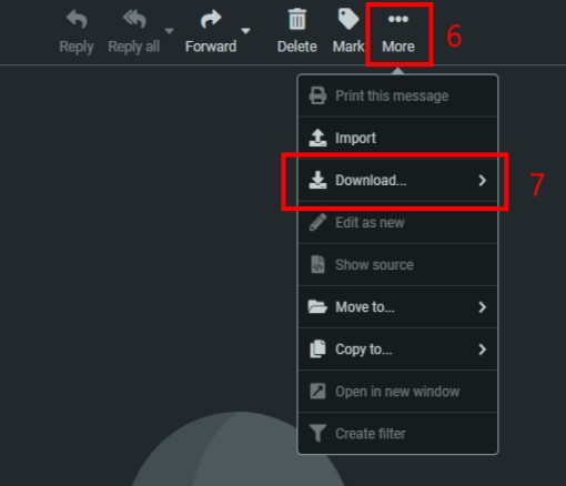 หมายเหตุ : ในการดาวน์โหลดอีเมลผ่าน Roundcube Webmail นี้ สามารถดาวน์โหลดได้ครั้งละไม่เกิน 50 MB