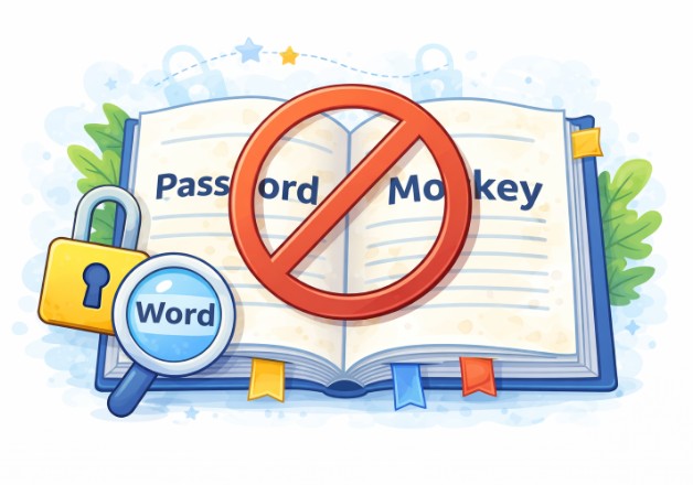 อันนี้ไม่ได้ล้อเล่น! เพราะคำทุกคำที่มีอยู่ในพจนานุกรม ได้ถูกนำไปใส่ในโปรแกรมคาดเดารหัสผ่านเรียบร้อยแล้วโดย Hacker จะทำการสุ่มรหัสผ่านจากคำ หรือกลุ่มคำง่ายๆ เช่น password letmein football หรือการนำคำเหล่านี้มาประสมเปลี่ยน o เป็น 0 เปลี่ยน a เป็น @ หากจำเป็นต้องใช้จริงๆ เราขอแนะนำให้สร้างเป็นประโยคยาวๆ ไปเลยจะทำให้แฮกเกอร์ หรือโปรแกรมคาดเดารผัสผ่านได้ยากขึ้น